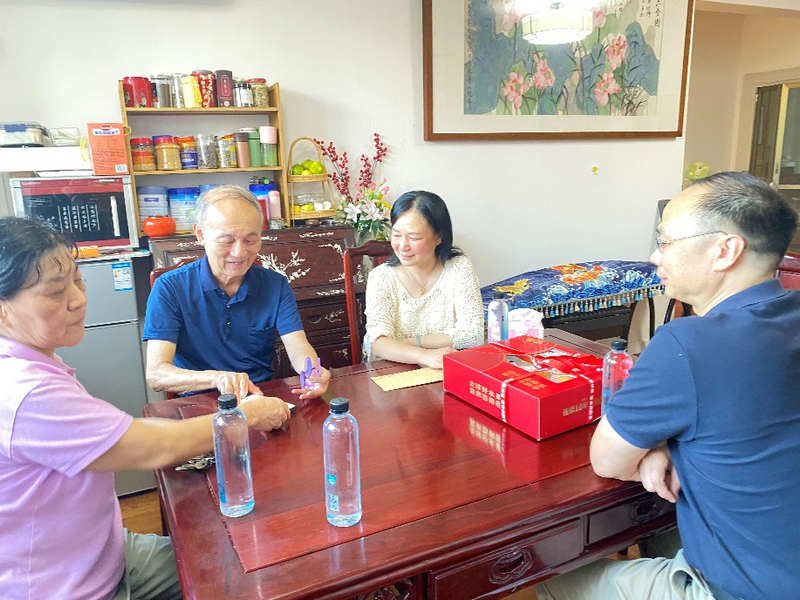 9月30日,张东蕙、王勇、郑茨萍、王左等在李友文老书记(左二)家中