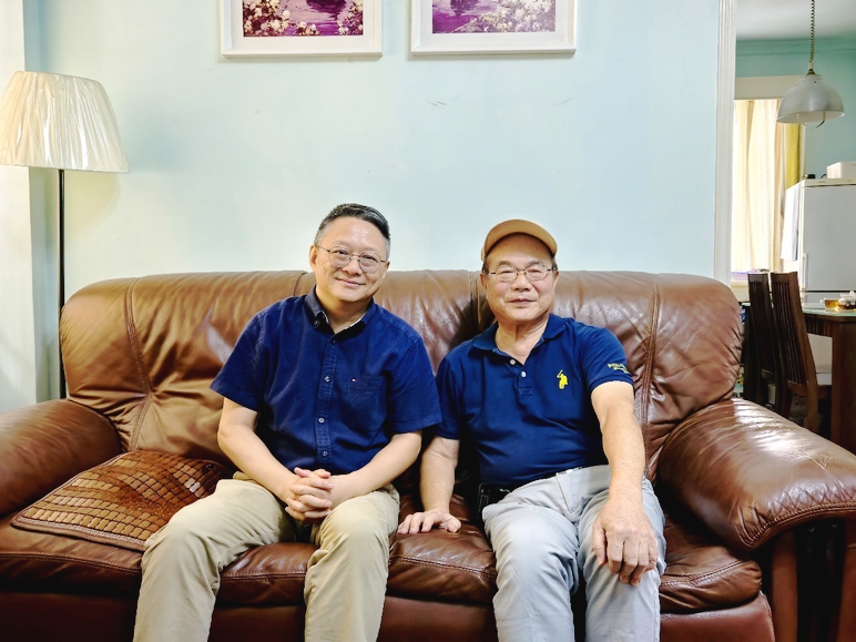 10月6日,常晨光、梁一川走访慰问林烈城教授(右)