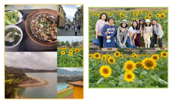 本次活动地点为珠海市,一路上探访了向日葵园、斗门老街、金台寺及珠海“小泸沽湖”等景点。在向日葵园,大家一同欣赏热情奔放、生机勃勃的向日葵花,金黄色的花海和轻盈的春风将大家的心情渲染得异常舒畅,纷纷拍照留念,记录下这美好的时刻。在斗门老街,大家沿着老街漫步,一起感受古朴的街巷和珠海清末民初的文化历史。最后,大家来到金台寺和珠海“小泸沽湖”,在恢宏大气的寺院和碧绿如玉的湖水间畅游。