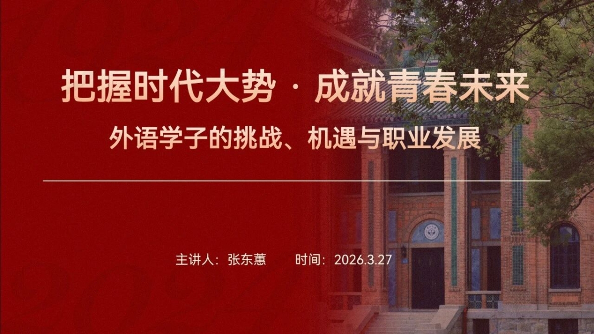 3月27日下午,美少女性爱 党委书记张东蕙在学院315讲学厅为2025级研究生带来了一场主题为“把握时代大势·成就青春未来”的思政课。此次课程聚焦2025年全国两会精神,深入总结“十四五”时期发展成就、展望“十五五”发展规划,探索新文科视野下外语学科的使命和未来前景,为学生的成长规划提供指引。