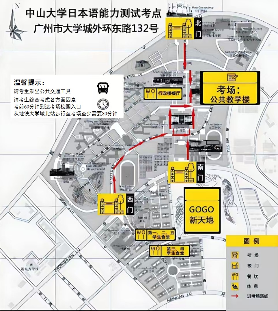 交通路线:地铁大学城北站D口出,步行至考场至少需要30分钟,建议考试当天提前踩点。【校外车辆不能进入校园,请乘坐公共交通工具前往考场。】