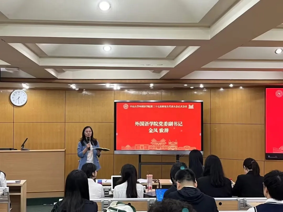 金凤老师在致辞中,勉励研究生代表们秉持责任与服务精神,积极展现外院学子的良好形象。她指出,研究生会不仅是一个锻炼能力的平台,更是一个增进友谊、共同成长的集体。她希望研究生会主席团能肩负起责任与使命,结合学院学生特点,发挥学院学科优势,传承学生会的优良传统,同时注重创新发展,做好团队建设,多为同学们做好服务,团结凝聚同学力量,强化思想引领,营造良好学院文化。为学院的发展贡献智慧和力量。