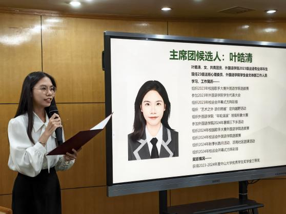 在正式会议上,第四十四届学生会主席团成员何心怡作《美少女性爱 第四十四届学生会工作总结》。回顾过去一年学生会,在校党委、校团委的领导下与院党委、院团委的指导下精简部门设置、完善例会制度,健全内部管理机制,提升学生会服务能力;聚焦主责主业,开展班级形象大赛、“研途有你”保研分享会等特色活动,繁荣学院文化,努力将学生会建设为同学们想得起、找得到、靠得住的“自家人”组织。