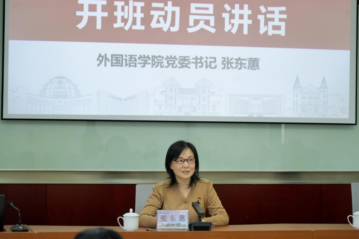 11月29日下午,培训班举行开班仪式。我院党委书记张东蕙、副书记金凤,院长助理肖明文教授,英语系常新萍副教授,外语教学中心王哲教授、王欣副教授、李军军高级讲师、朱坤领老师,以及学院管理人员、学生代表等出席开班仪式。开班仪式由金凤副书记主持。