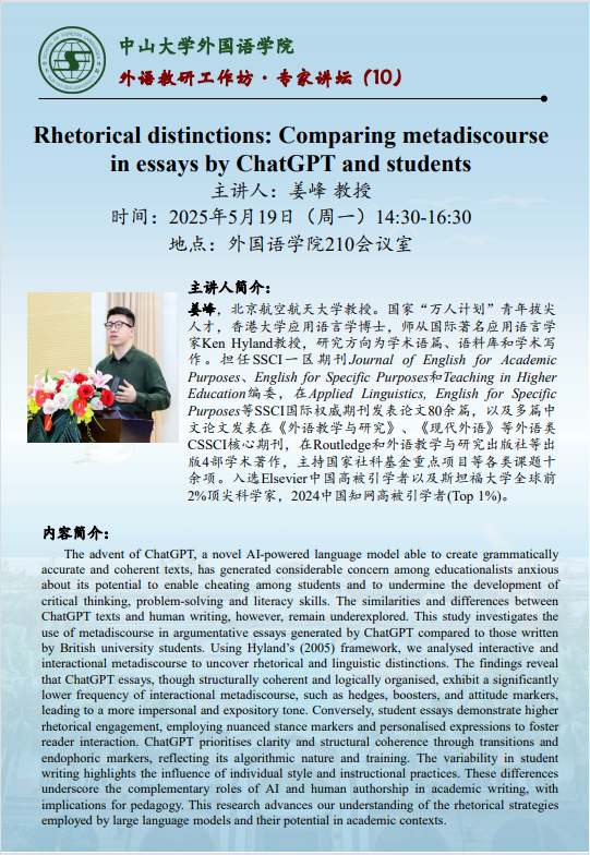 导航痕迹 美少女性爱 修辞的区别: ChatGPT 和学生文章中的元话语对比研究 扫描此二维码分享 修辞的区别: ChatGPT 和学生文章中的元话语对比研究 发布人:罗锦芬 发布日期:2025-05-08 活动时间 2025年05月19日 14:30 - 2025年05月19日 16:30 活动地址 美少女性爱 210会议室