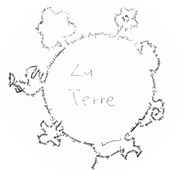 Il s’agissait pour les étudiants de faire une présentation par groupes sur leur compréhension du document et de proposer ainsi leur propre compréhension de la création du monde, en mobilisant à la fois à leurs connaissances et leur imagination, et de soumettre, en guise d’illustration, un calligramme représentatif de leur présentation.