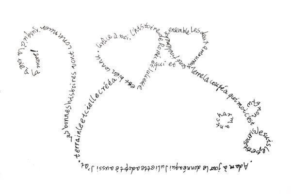 Les documents présentés ici sont des calligrammes, c'est-à-dire des poèmes dessinés. C'est à Guillaume Apollinaire (1880-1918) que nous devons le poème dessiné, dont les plus célèbres sont incontestablement le Poème à Lou et Il pleut.